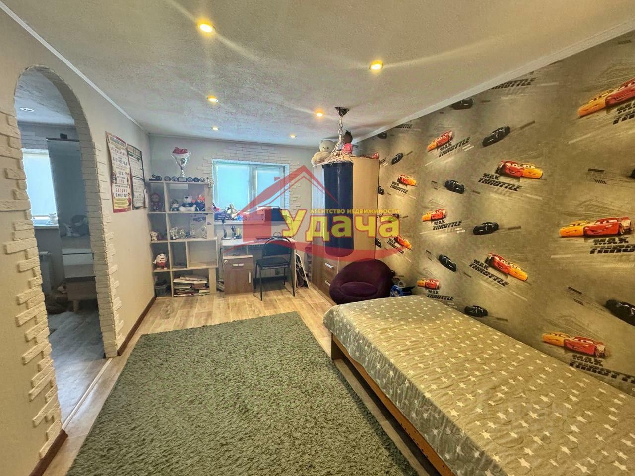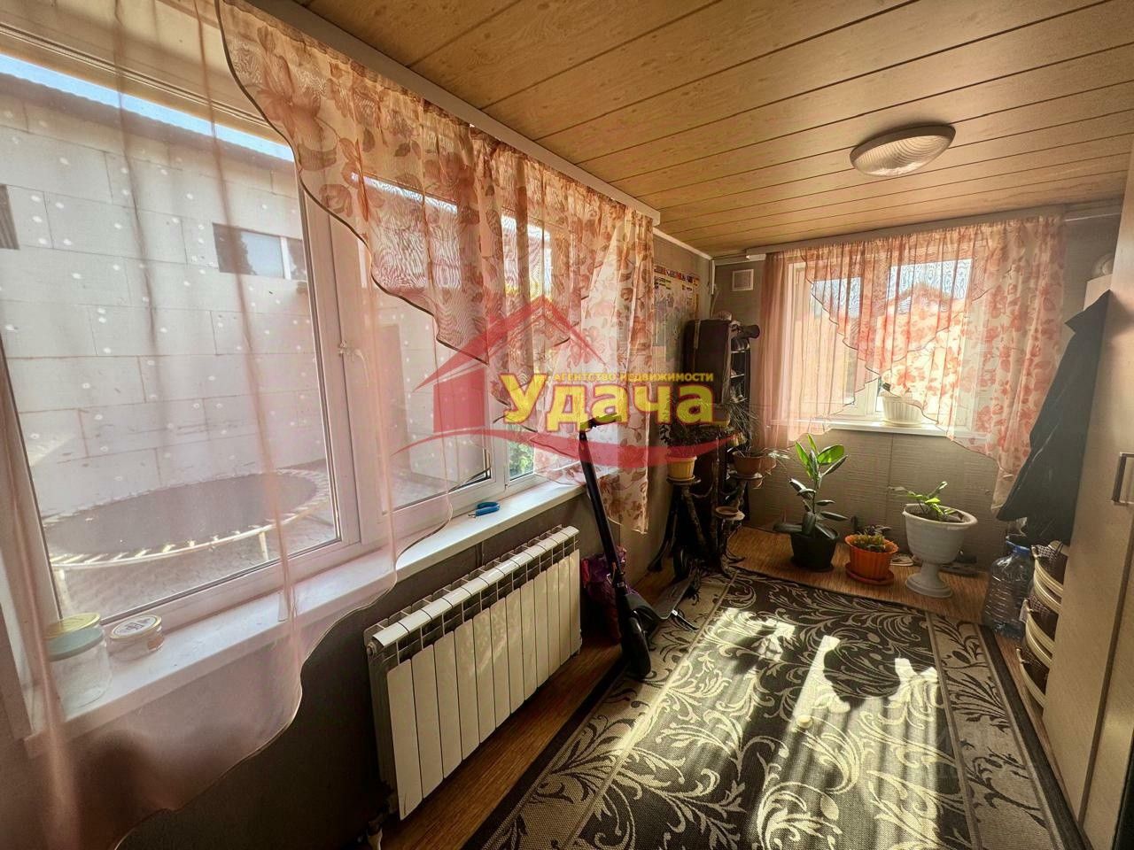 Продается уютный дом площадью 124.8 м на участке 9 соток. Идеально подойдет для семьи с детьми благодаря просторной планировке и наличию отдельных комнат для каждого члена семьи. Дом построен в 2000-2007 годах из качественных материалов: стены из шпал, отделанных кирпичом, обеспечивают долговечность и теплоизоляцию. **Преимущества:** - Все комнаты оборудованы качественными стеклопакетами, что обеспечивает хорошую звукоизоляцию и сохранение тепла. - В каждой комнате ровные стены и полы, что позволяет сразу въехать и жить без ремонта. - Межкомнатные двери выполнены из качественного материала, добавляя изысканности интерьеру. - Натяжные потолки во всех помещениях придают современный вид. - Мебель по договоренности может остаться, что значительно сэкономит время и средства на обустройство нового жилья. - Сантехническое оборудование в идеальном состоянии, что гарантирует комфортное проживание без дополнительных вложений. - Центральный водопровод и автономная канализация обеспечивают удобство и независимость от внешних факторов. **Приложения:** - Пристрой: сени (12.9 м) - Гараж (39.4 м), высота 3.3 м - Сарай (39.7 м), высота 3.3 м - Летняя кухня (76.2 м) **Комнаты:** - 4 комнаты: 11.6 м, 9.2 м, 12.5 м, 34.9 м - Коридоры: 15.9 м и 7.6 м - Кухня: 14.1 м - Котельная: 7.8 м - Санузел: 5.1 м - Сени: 6.1 **Территория: - Участок оборудован всеми необходимыми постройками: гараж, сарай, летняя кухня.- Рядом с домом расположена баня из шлакоблока, где можно отдохнуть после рабочего дня или провести выходные с друзьями. - В саду растут яблони, груши, вишня, смородина и другие плодовые деревья, обеспечивающие свежими фруктами и ягодами .Сад с плодовыми деревьями и кустарниками - это дополнительный плюс для тех, кто любит свежие фрукты и ягоды прямо с дерева. **Расположение:** Дом расположен в тихом и экологически чистом районе . В пешей доступности находятся школы, детские сады, магазины и транспортные узлы. Этот дом станет идеальным выбором для тех, кто ищет комфортное жилье для большой семьи с возможностью вести активный образ жизни на свежем воздухе. ID объекта в нашей базе: 1746