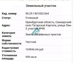 Продаётся чистый земельный участок 11 соток в п. Новосергиевка, ул.Жукова д.48. На данном участке расположен недостроенный дом 12м х 13м год постройки 2021 все стены, включая перегородки изготовленны из керамзитоблока, крыша не накрыта. В дом заведено водоснабжение, электроснабжение, канализация, газовая труба проходит краем участка, полы засыпаны карьерным песком. Участок расположен на асфальтированной улице, в шаговой доступности находится новый детский сад, парк, детская площадка, магазины, проходит маршрутный автобус. реальному покупателю торг. По всем вопросам обращаться по номеру Николай.