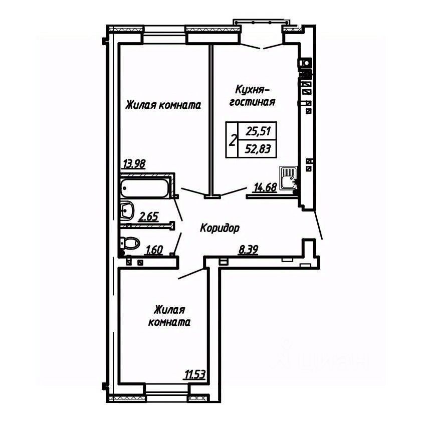 Продаётся 2-комнатная квартира в строящемся доме (Дом 10 Корпус 1), срок сдачи: IV-кв. 2026, общей площадью 52.83 кв.м., на 4 этаже.