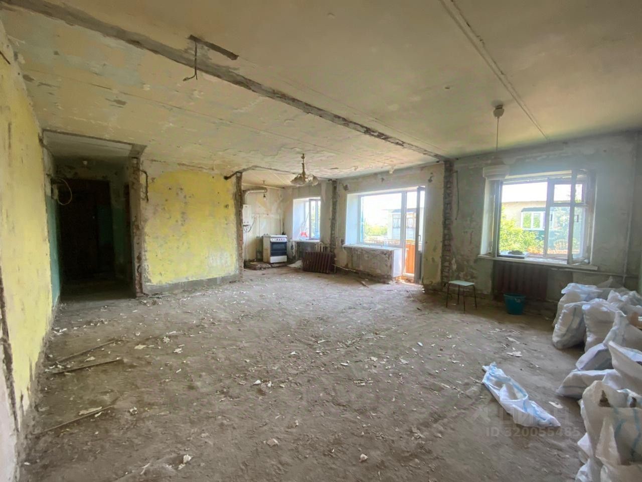 Квартира не угловая, с балконом, подготовлена к ремонту, сделан демонтаж пола, внутренних перегородок.