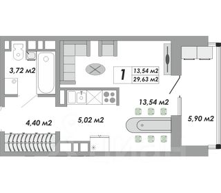 Общая площадь29,63 м2