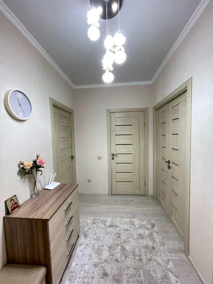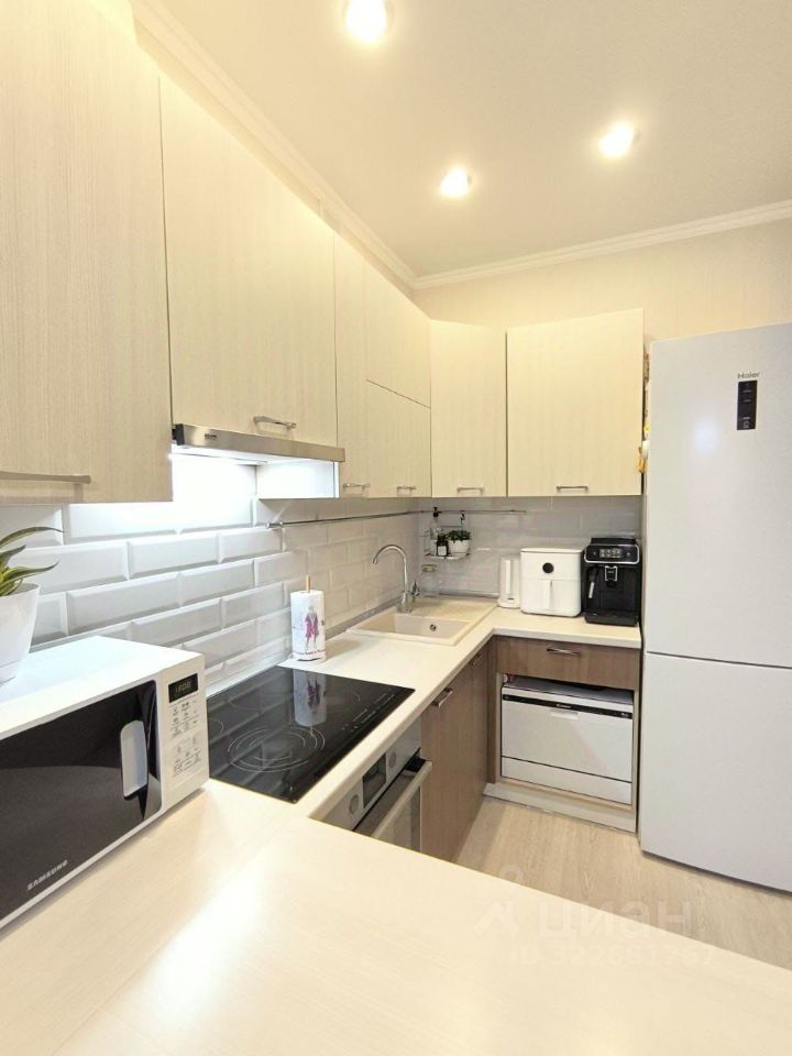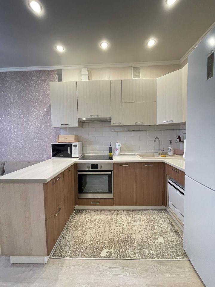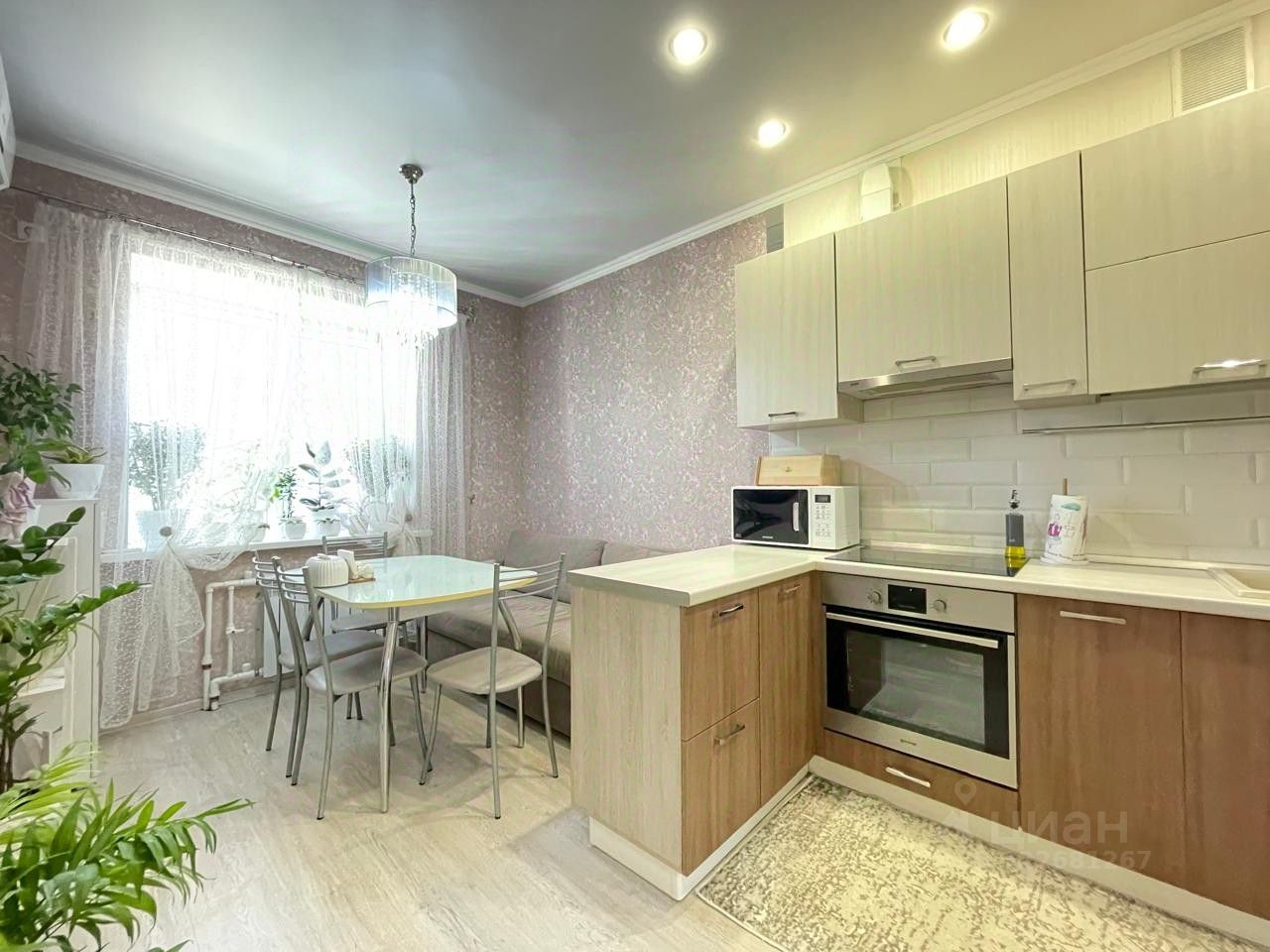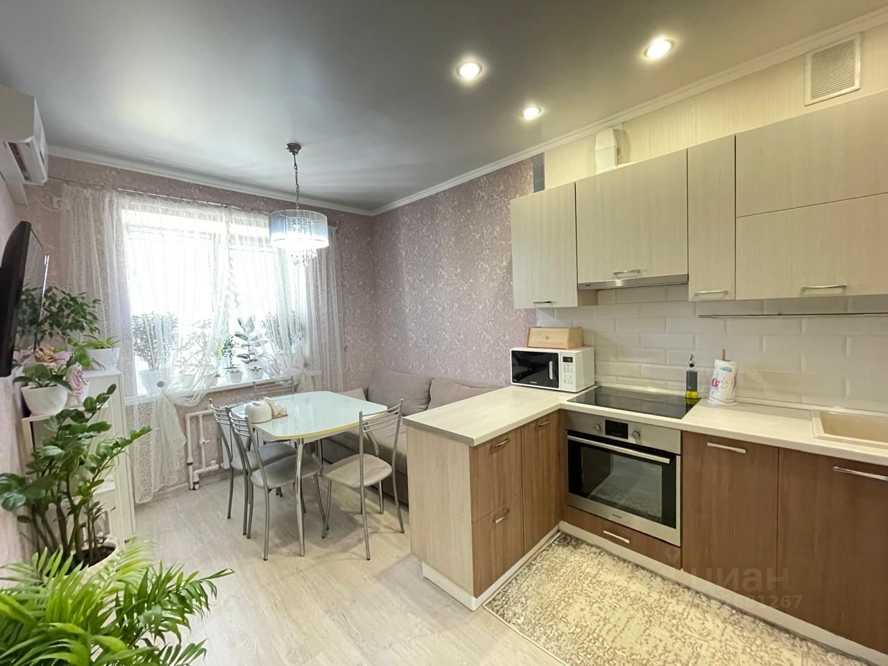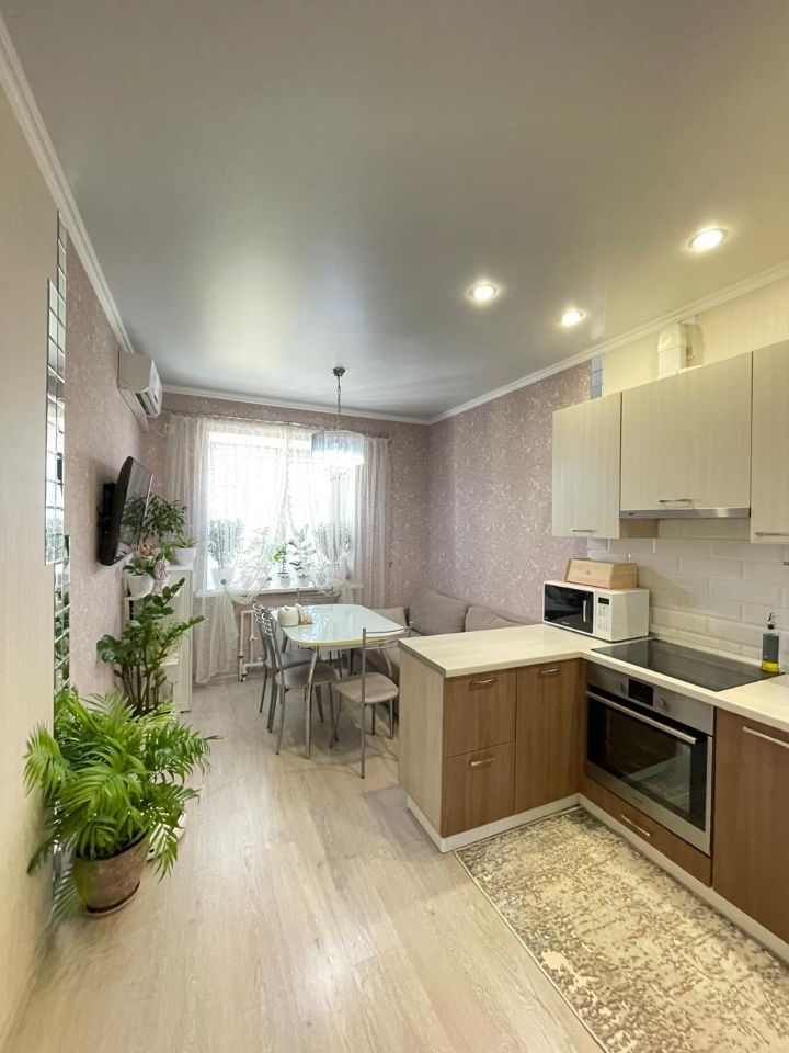 Квартира светлая и чистая c качественным современным ремонтом (делали для себя не на продажу). Все стены и полы выровнены, удобно разведена электрика. На полу в прихожей керамогранит, в комнатах износостойкий ламинат, на стенах плотные виниловые обои, потолки натяжные матовые с точечными светильниками, ванная комната и туалет полностью отделан кафелем, установлена сан техника, качественные входная и межкомнатные двери. Квартира продается частично с мебелью и техникой. 2 кондиционера, кухонный гарнитур со встроенной вытяжкой, варочной панелью и духовым шкафом, раскладной диван, в прихожей в нише встроен удобный вместительный шкаф купе.