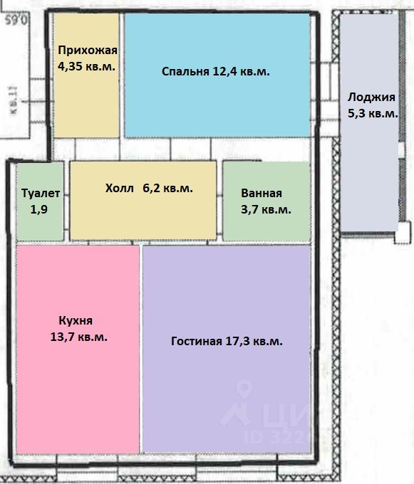 Большая кухня 13,7 кв.м. с выделенной зоной для приготовления пищи и уютной обеденной зоной. 2 изолированные комнаты - просторная гостиная 17,3 кв.м. и спальня 12,4 кв.м. Санузел раздельный - ванная комната и туалет. Удобная входная группа - прихожая со встроенной системой хранения, где можно легко разместить верхнюю одежду и обувь и просторный холл.