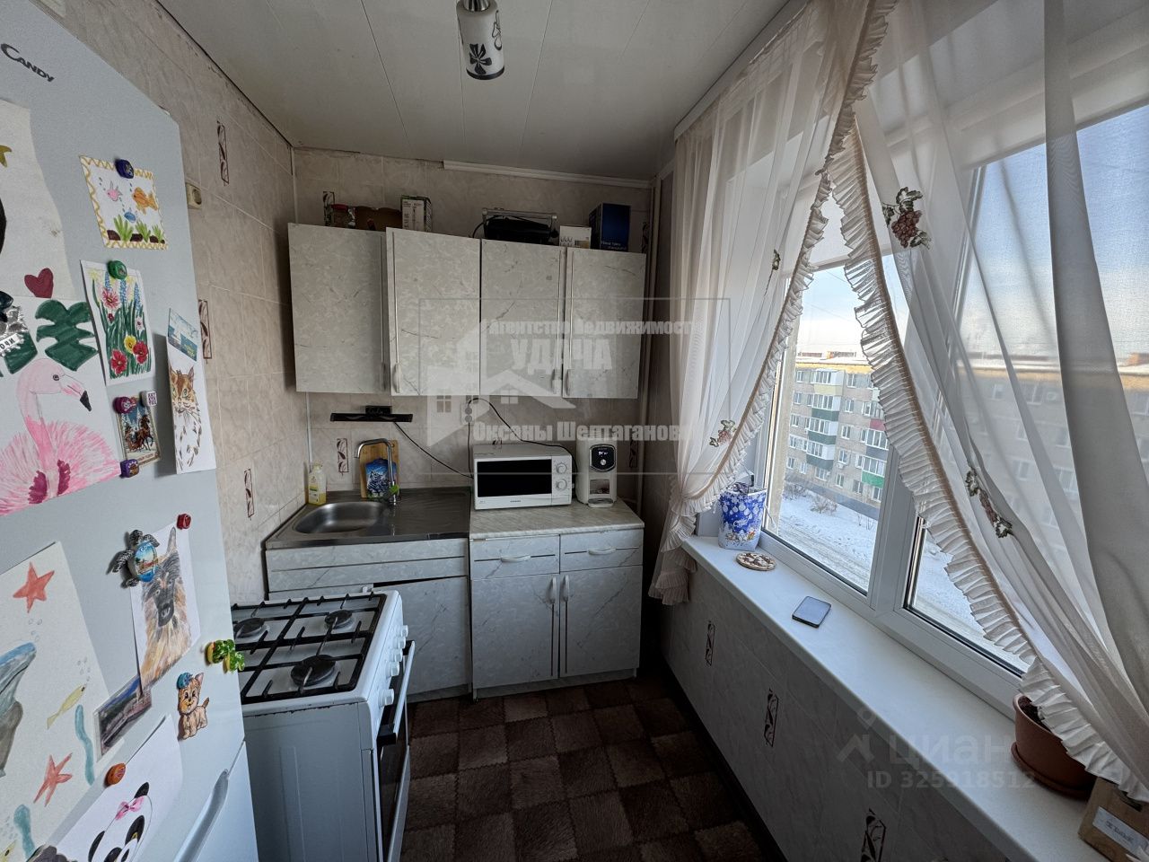 В квартире сделан косметический ремонт: сан. узел в кафеле, в комнатах линолеум, установлены пластиковые окна, лоджия застекленная.